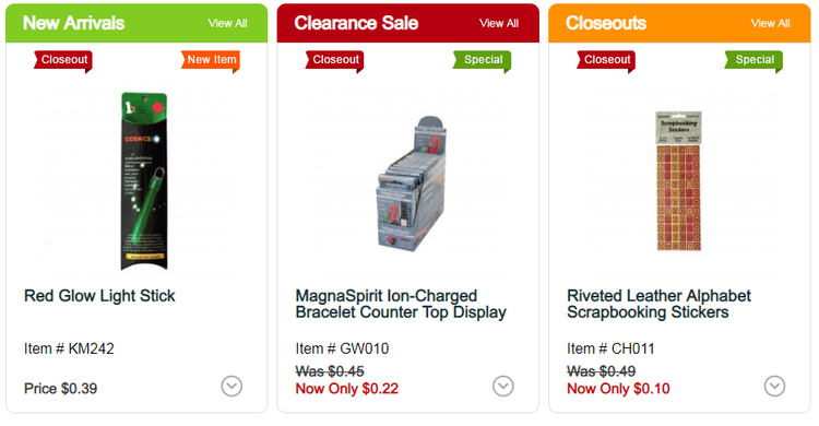 Offers items at a lower than retail price. Buying wholesale items it from your site will save customers money.