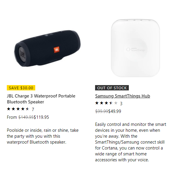 This Samsung SmartThings Hub is so popular that the Microsoft Store can’t keep it in stock. Rather than removing the item from the store, an Out of Stock label keeps the product in front of customers and shows how popular it is.