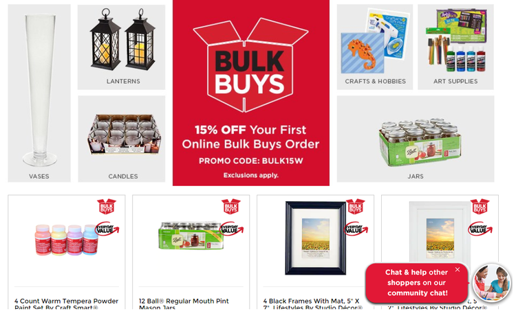 Buying a large enough quantity of an item lowers the cost of each individual unit. Michael’s Bulk Buys label indicates that if you buy certain items in certain quantities, the per-item price is lower.