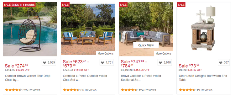 Another form of urgency, Overstock’s Sale Ends in X Hours badge shows customers they can only purchase an item at the sale price within a certain time frame.