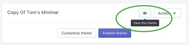 Once you've modified your duplicate theme, you can then Preview your changes by clicking on the preview icon next to the theme as seen here: