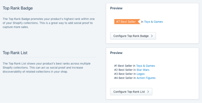 The Badges & Lists promotion section is where you'll find the Top Rank Badge and Top Rank List which you can use for on site promotion of your best sellers.