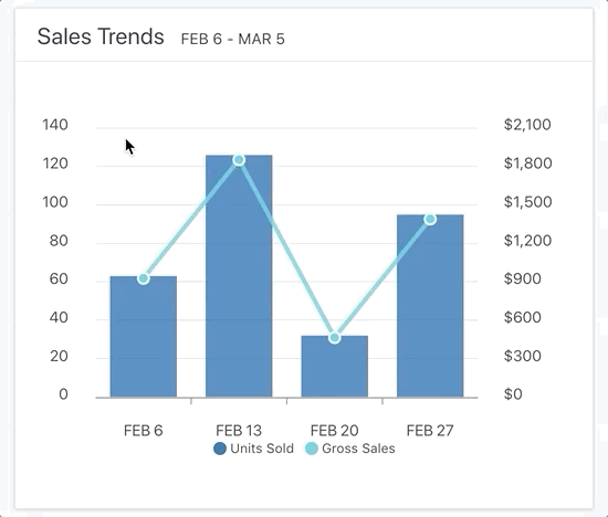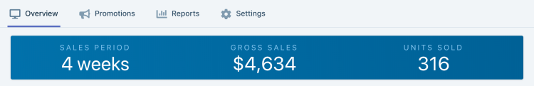 The Sales Trends reports makes it easy to see the breakdown of gross sales and units sold for each week. The number of weeks shown matches your configured best sellers sales period.