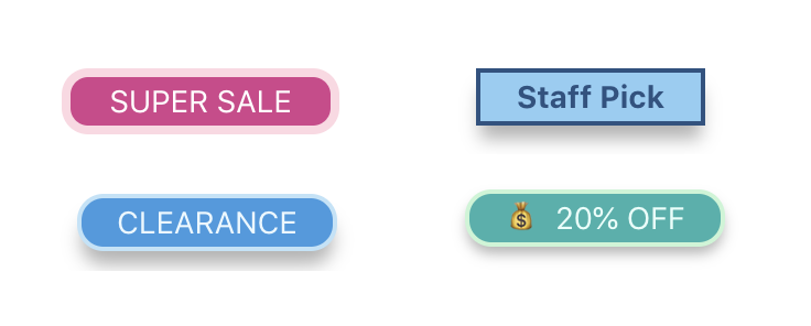 You can use borders and shadows to make your Flair badges stand out even better so your customers take notice. Borders and shadows each come in three variations: Small, Medium and Large.