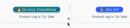 Badges and banners that are scheduled to publish in the future will show a clock icon within Flair: