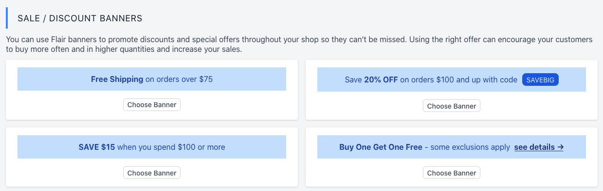 You can use the Flair badge and banner galleries to get inspiration for lots of different promotions you can try in your store.