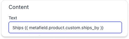 For example, let's say you want to display a shipping estimate for your products. You could create a product metafield called custom.ships_by and set it to a timeframe such as "in 5-7 days".